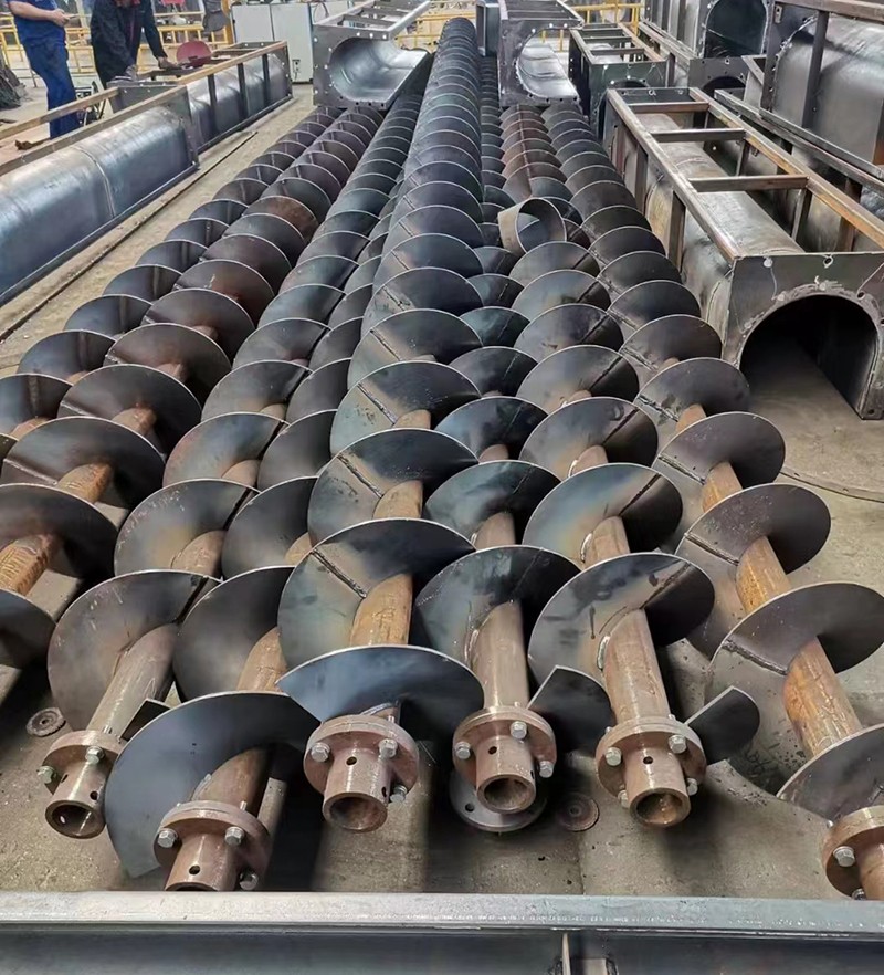 螺旋葉片主要用于輸送粘度較大和可壓縮性物料,這種螺旋面型,在完成輸送作業(yè)過程中,同時具有并完成對物料的攪拌、混合等功能。螺旋輸送機(jī)的螺旋葉片有實體螺旋面、帶式螺旋面和葉片螺旋面三種形式。